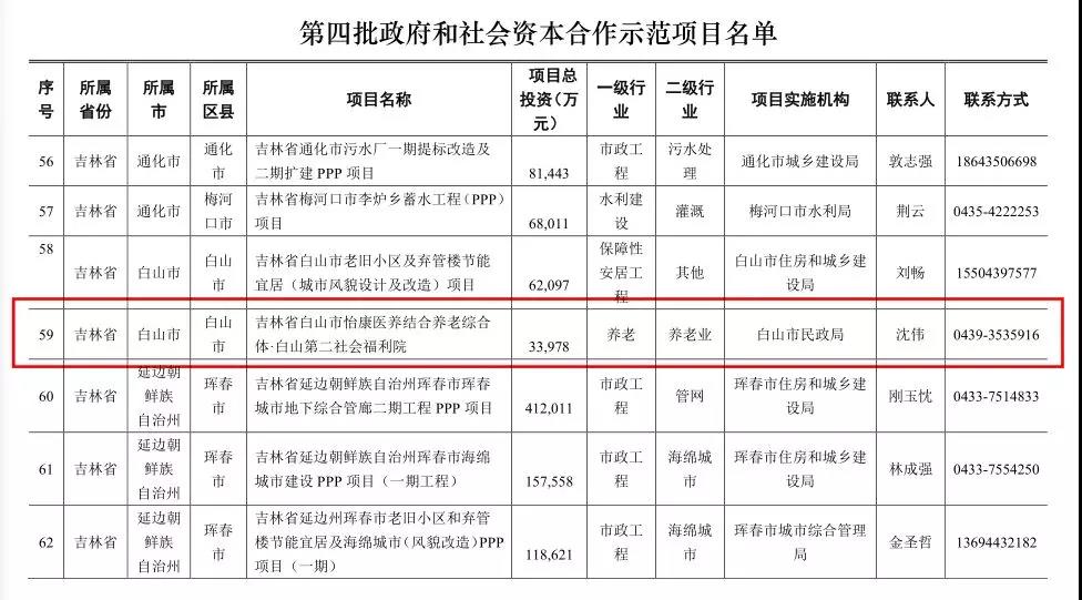 日前,财政部网站发布《关于公布第四批政府和社会资本合作示范项目名单的通知》,其中明石博略提供服务的吉林省白山市怡康医养结合养老综合体·白山第二社会福利院PPP项目入围示范项目。