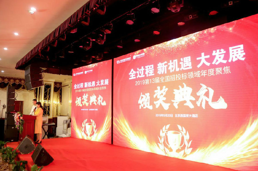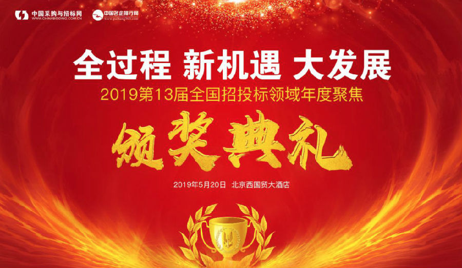 近日,由中国采购与招标网、中国名企排行网联合主办的的“2019第13届全国招投标领域年度聚焦颁奖典礼”在北京西国贸大酒店隆重召开。本次活动包括两大议程,分别是中国全过程工程咨询高峰论坛及年度聚焦颁奖典礼。